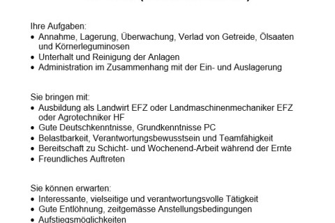 Annahme Brot- und Futtergetreide, sowie Ölsaaten